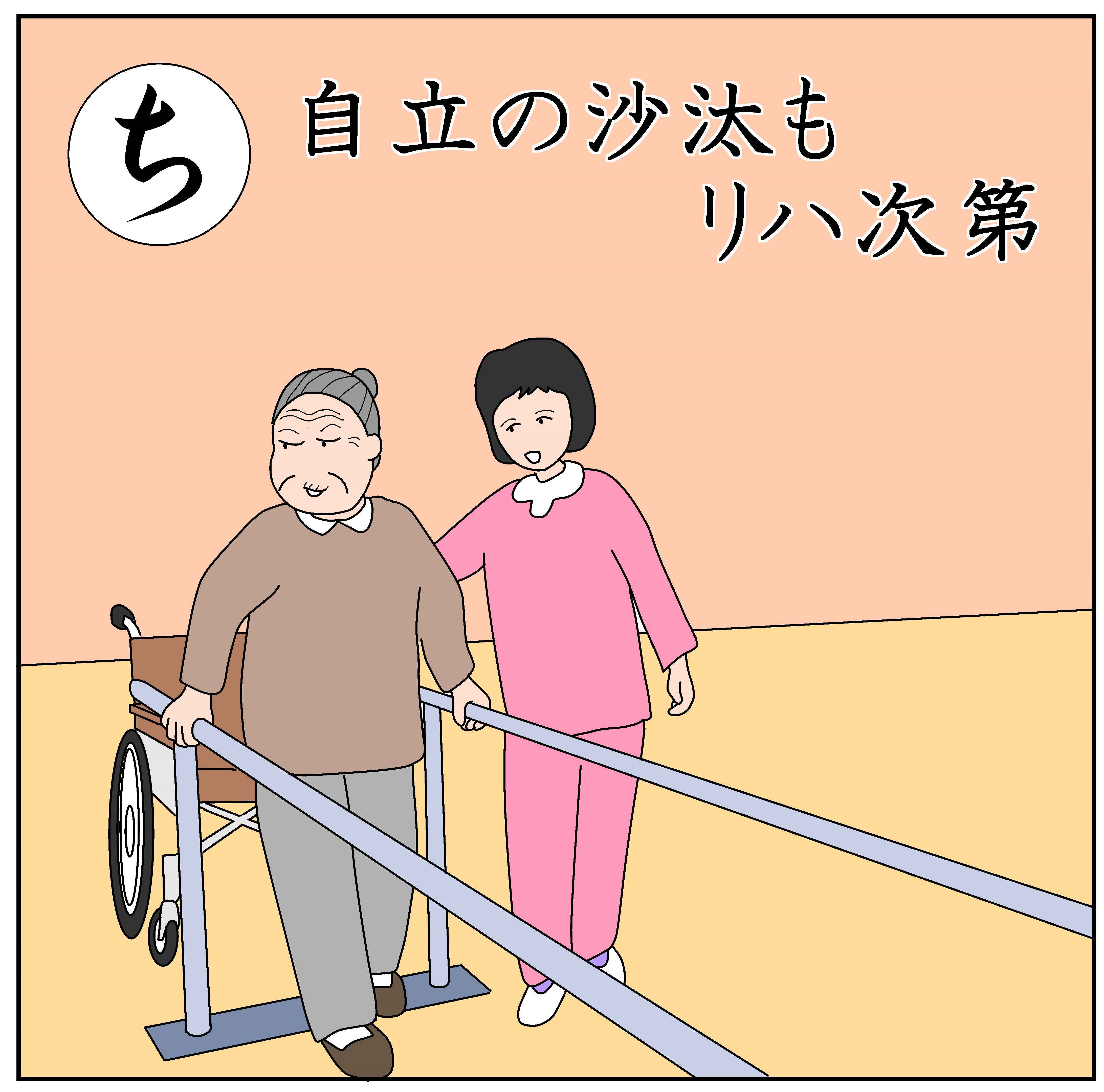 【意味】 自立動作、自立生活を再度獲得するためにはリハビリでの努力が大切だということ。