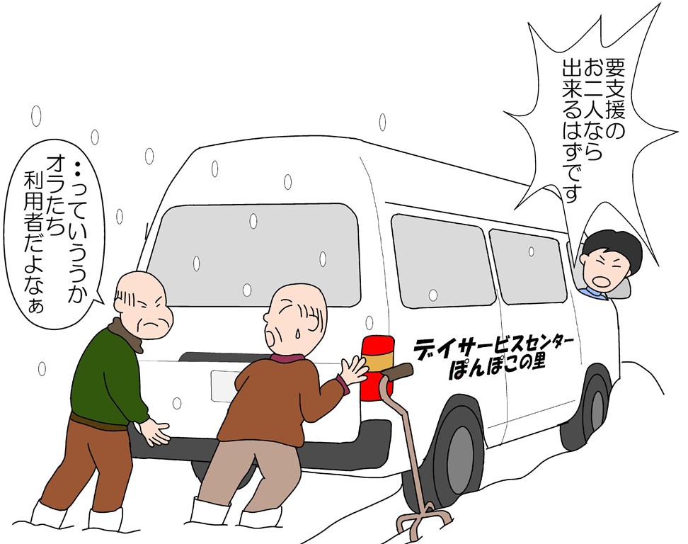 当然、ご家族はそれに間に合うように、それを目安に出かける準備をされているのですが、雪道はなかなか定刻通り運行するのが難しいです。
