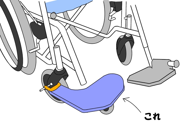 →介護者が強引に車椅子を動かした場合、板が思わぬ方向へ回転してしまいます。